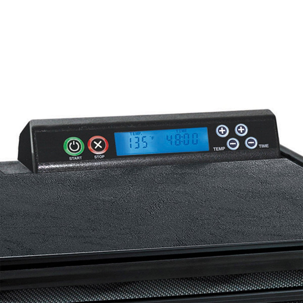 48 hour DIGITAL CONTROLLER! *NEW* Two Time, Two Temperature digital controller speeds up the drying process. After loading food onto the trays, set the dehydrator at a higher temperature for a specified period of time; and then set the dehydrator at a lower temperature for a specified period of time. The unit automatically adjusts after the 1st setting and turns off when the 2nd setting is complete.