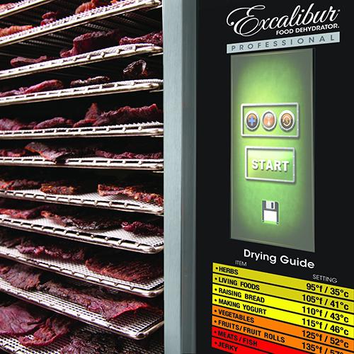 Dehydrate fruits, vegetables, nuts, meat for jerky, fruit puree for fruit roll-ups, raise bread or make homemade yogurt. The perfect snacks for you and your guests. Excalibur's patented hyperwave technology and horizontal parallex drying removes water from food with a continuous circulation of thermostatically-controlled warm air, efficiently and user-friendly.