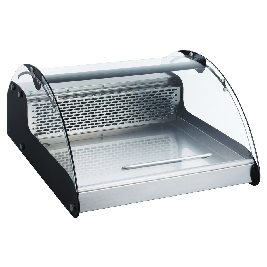 (RS-CN-0118-E) Seafood/Meat Refrigerated Display Case, countertop, self service, 27-2/5"W x 34-7/10"D x 16-2/5"H, curved front glass door & sides, stainless steel deck, digital temperature control, automatic defrost, adjustable feet, 110v/60/1-ph, .75 amps, cord, NEMA 5-15P (shipped on pallet)