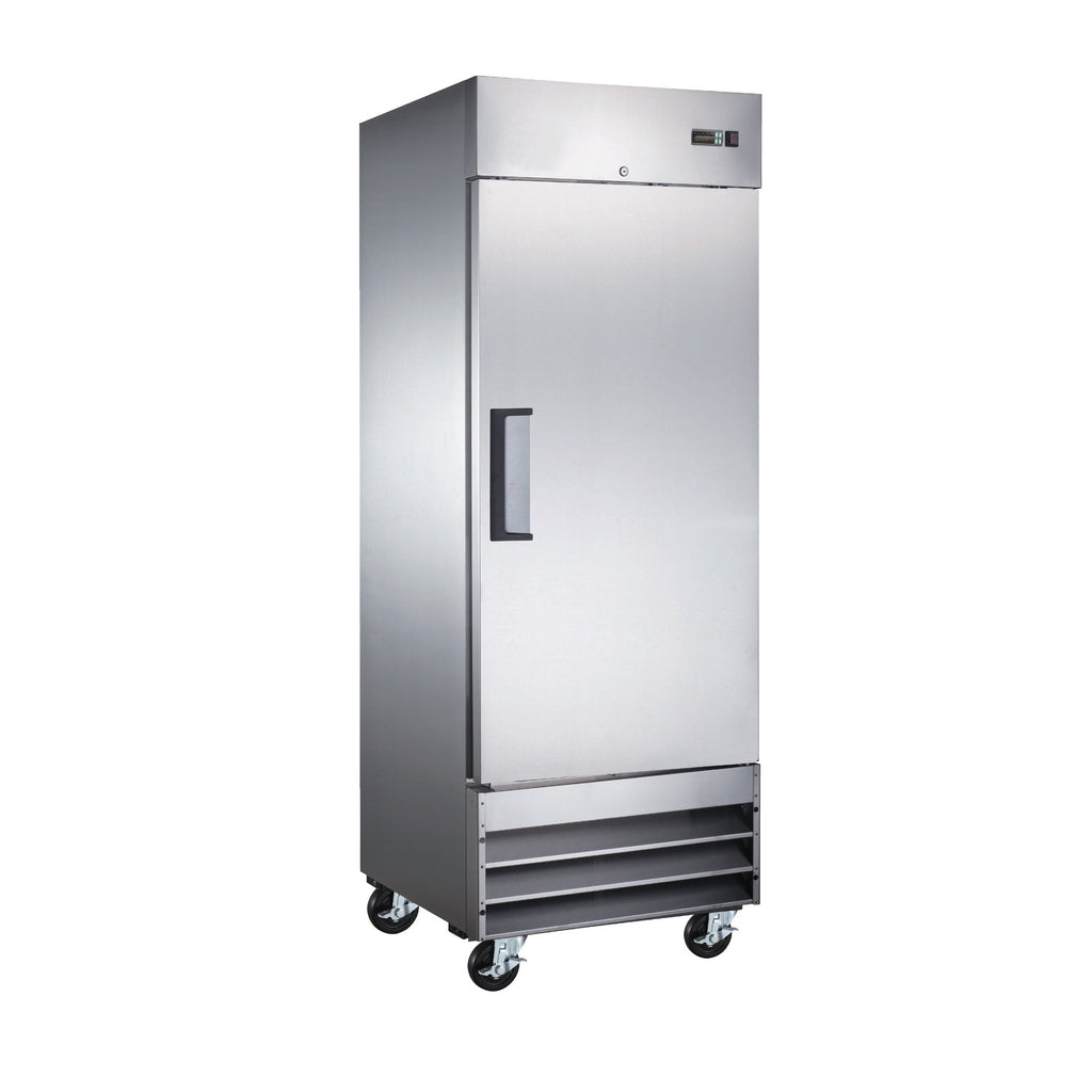 (RE-CN-0021-HC) Refrigerator, reach in, one-section, 23 cu. ft., bottom mount self-contained refrigeration, 33°F to 41°F (0.5°C to 5°C) temperature range, solid door, (3) shelves, casters, R290 Hydrocarbon refrigerant, 1/5 HP, 2.6 amps, 110v/60/1-ph, cord, NEMA 5-15P, cETLus, ETL-Sanitation (shipped on pallet)