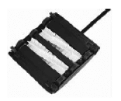 Two rows of rubber blades pick up wet and dry debris, depositing it into the debris pan.  Viewing windows on the top of the sweeper let you see when the Debris pans are full and need to be emptied.  Press on the rear of the pans to empty them, letting waste fall in the trash.