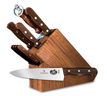 Block Set, 11 piece, includes: 3-1/4" paring, 6" boning, 8" chef's, 8" bread, 10" slicer, 10" sharpening steel, (4) 5-1/4 steak knives & #41490 slant oak block, 10 slot