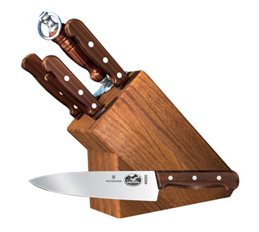 Block Set, 7 piece, includes: 3-1/4" paring, 6" boning, 8" chef's, 8" bread, 10" slicer, 10" sharpening steel & #7.9093.82 slant oak block, 6 slot