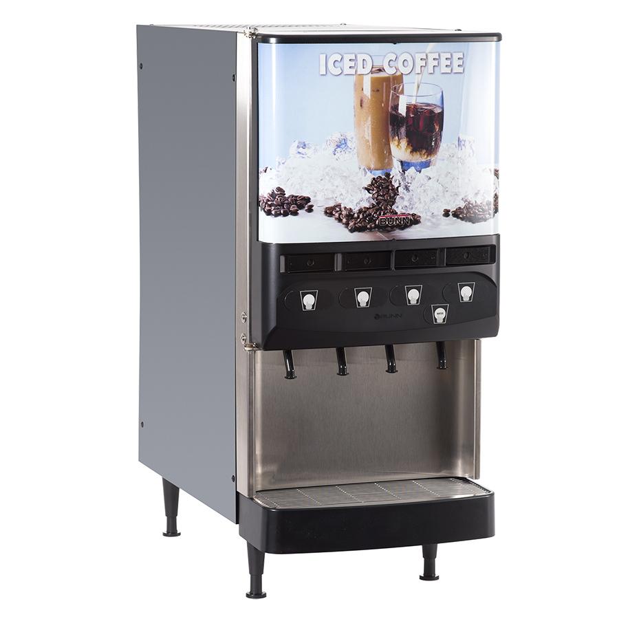 37300.0016 JDF-4S Silver Series® 4-Flavor Cold Beverage System, (3) 12 oz. drinks/min capacity, 2-modular dispense decks, 18 lb. ice bank, 7" cup clearance, dispense 1.0 to 1.5 ounces per second flow rate, pumps & mixes 2+1 to 11+1 concentrated beverages, 4+1 high viscosity & 5+1 juices, dispenses cold water, frozen and ambient products, High Intensity™ mixing technology, push button and portion control, cold water dispense, door lock, ice coffee display, 120v/60/1-ph, 6amps, NEMA 5-15P, NSF, ETL