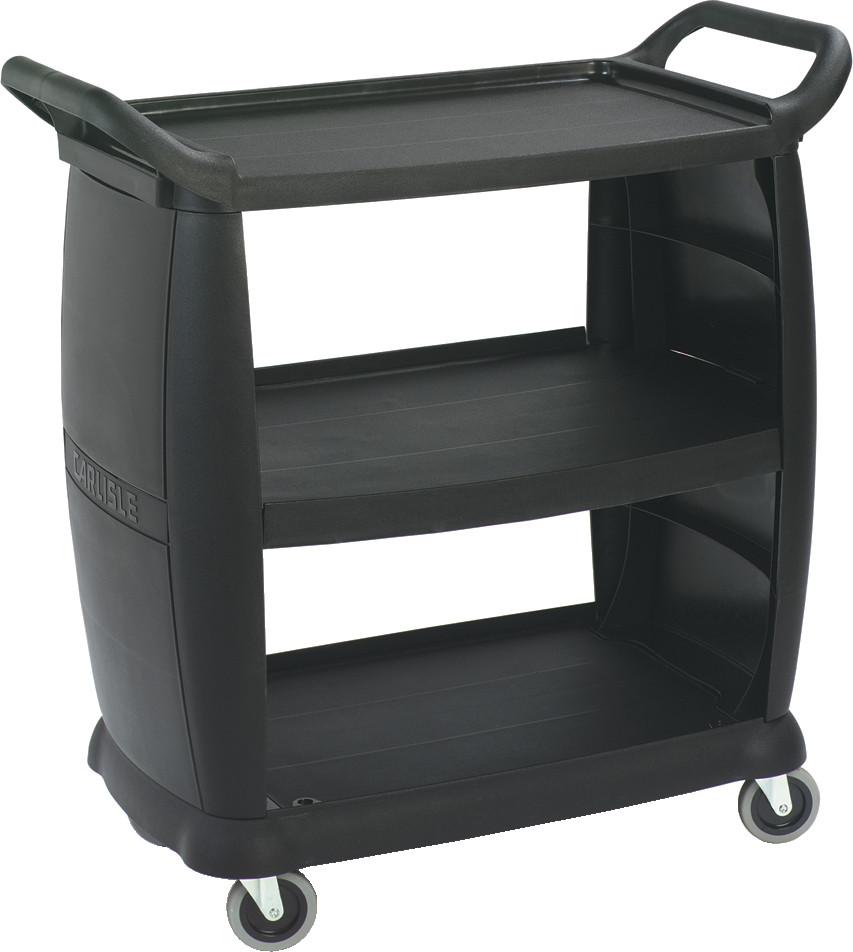 Durable construction will stand up to the toughest use; 300 pound capacity sturdy shelves are textured for better grip and to minimize scratches. Use for front of house serving, busing or even room service applications. Convenient knockdown design is easy to assemble.
