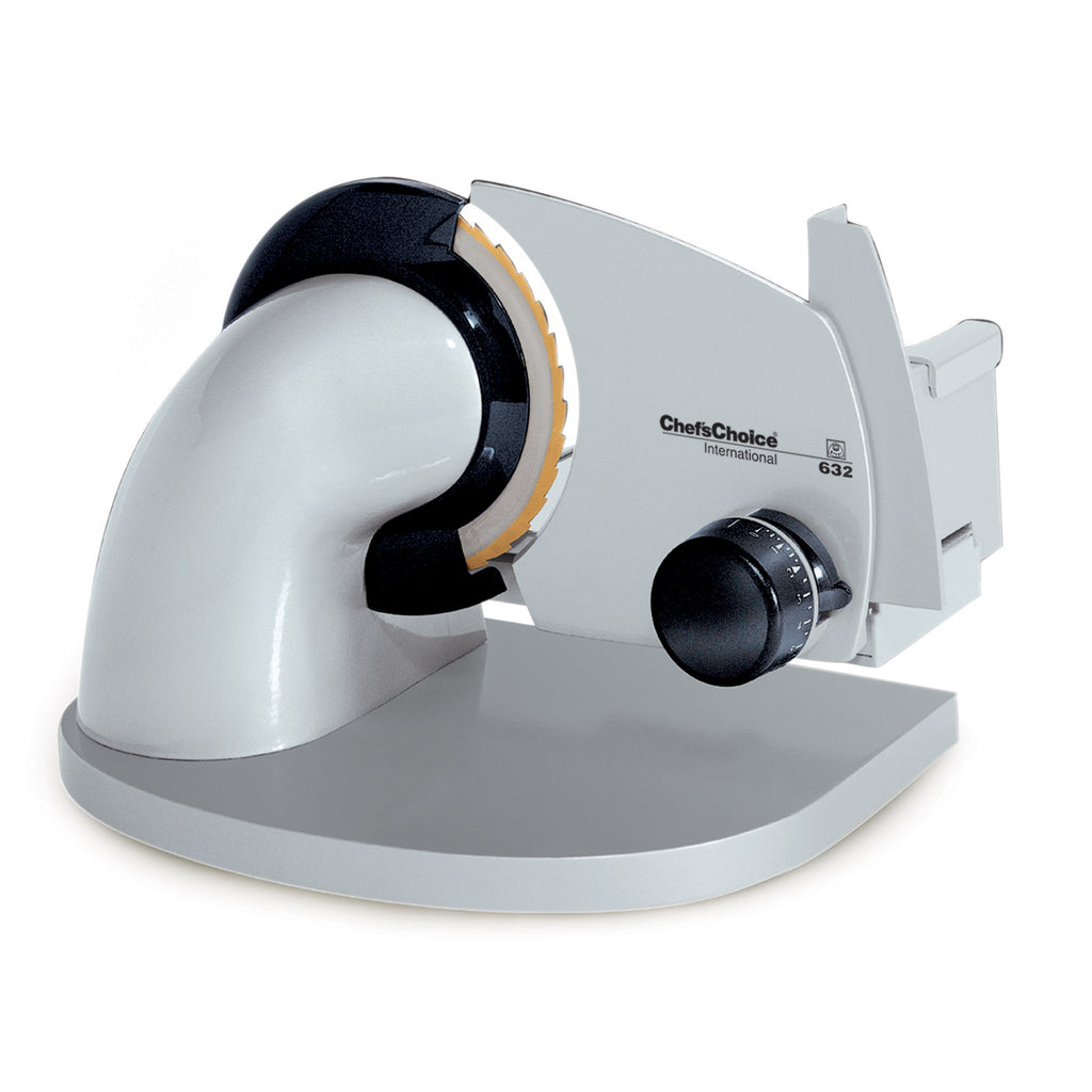 Heavy duty slicer features cast aluminum and stainless steel construction