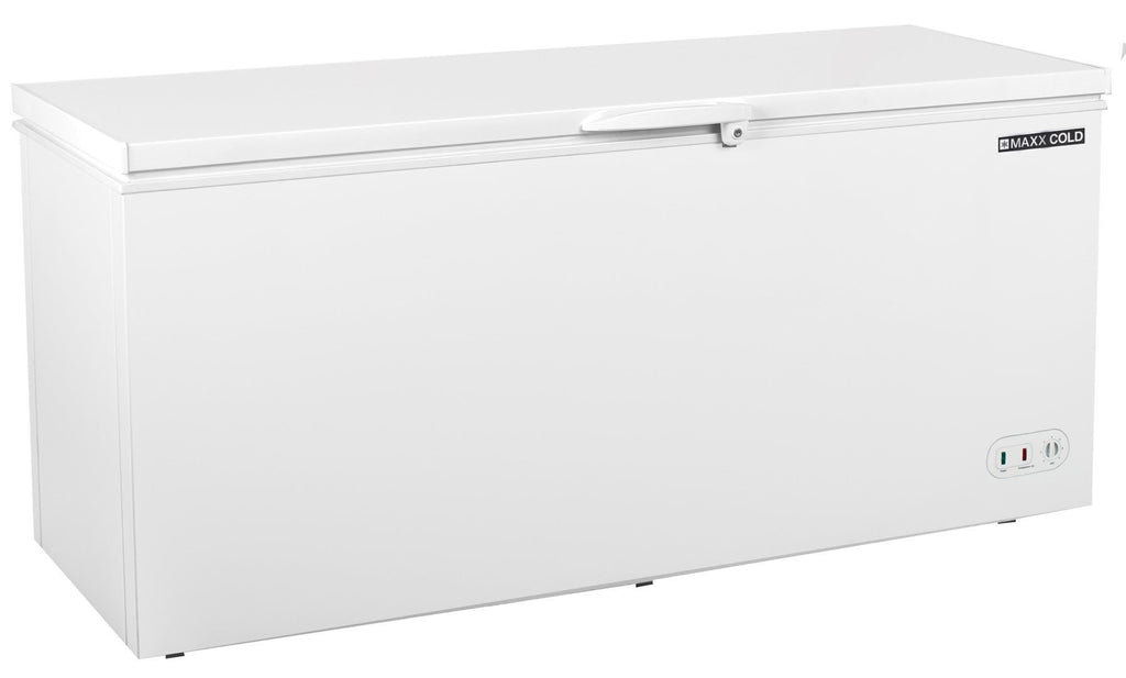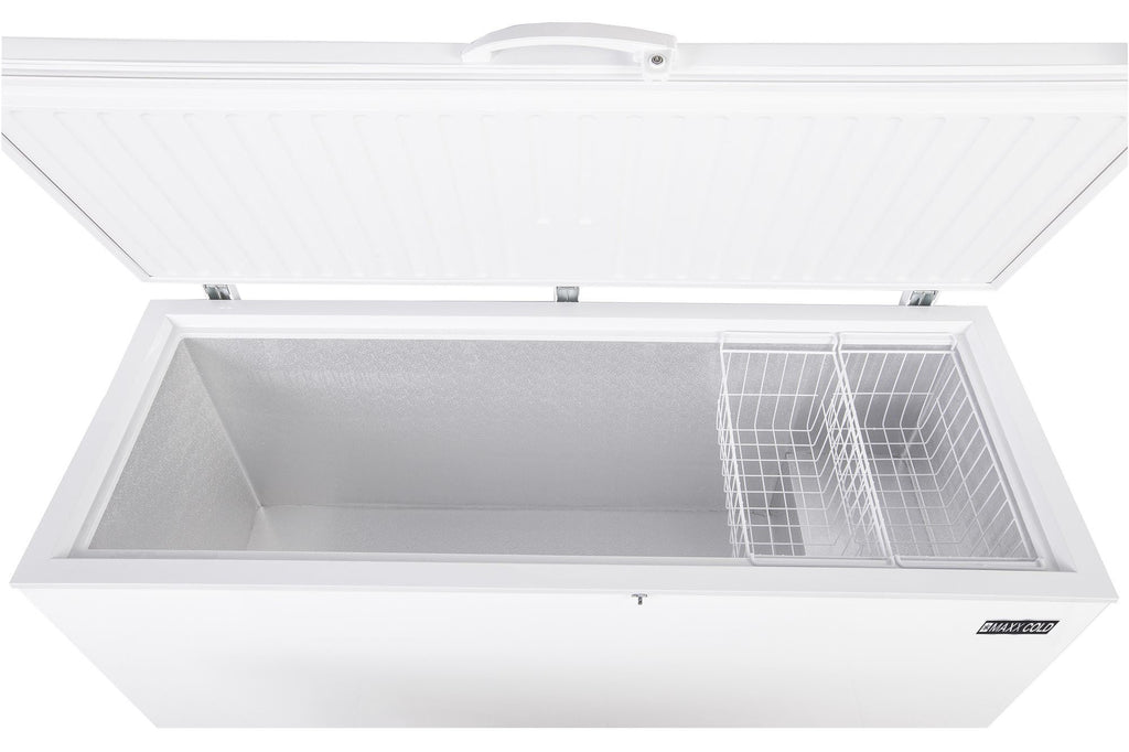 Maxx Cold Select Series solid hinged lid chest freezers are excellent for safely storing frozen food such as meat, packaged foods, ice cream, vegetables, desserts and bags of ice. The subzero chest freezer keeps frozen food product at the ideal storage temperature to maintain quality, taste, extended product life and prevents freezer burn as well as the development of ice crystals. Due to the hinged top lid design, frozen food product is easily accessible when it’s time to use. Interior storage basket is included to help you organize your products, allowing you to quickly locate and retrieve what you need. Designed with an oversized refrigeration system, this unit can be installed and used safely in a garage even if the temperature drops to 0 degrees F or rises above 100 degrees F. The hinged lid includes a lock and key to prevent unauthorized access to the contents. The freezer is sized to pull down its content temperature level if loaded with pre-chilled products (recommended loading temperature for all products is less than 41 degrees F/ 5 degrees C). The storage freezer will provide years of reliable operation if properly maintained and its white coated exterior is easy to wipe down and clean. Perfect for convenience stores, concession stands, ice cream shops, restaurants, bars, or your home. Large storage capacity of 19.4 cubic feet / 549 liters to store all your frozen foods
