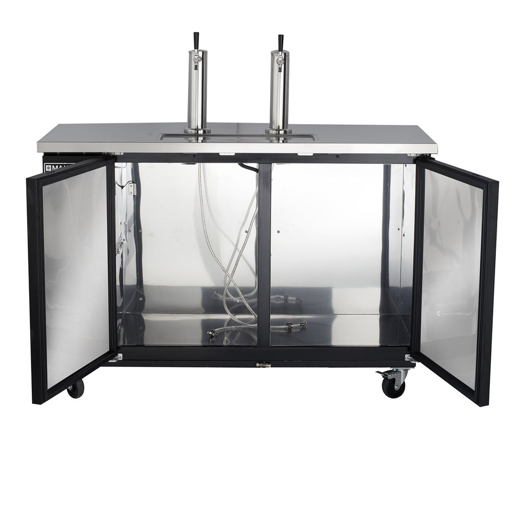 - Two 3” (77mm) diameter stainless steel insulated beer tower dispenses two different liquids