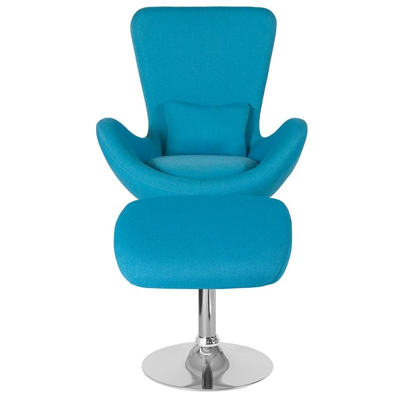 Curved wing sides provide a stylish arm detail. The ottoman will keep you relaxed by kicking up your feet. The round chrome bases feature a plastic ring to protect flooring. Guests will be charmed at the contemporary seating with the added comfort. Please your guests with stylish seating that is made for comfort.