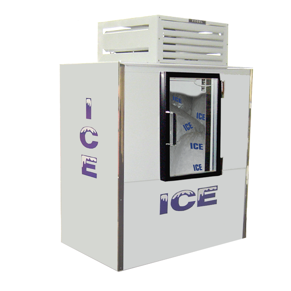 Description: Indoor Ice Merchandiser, bagged ice, 47 cu. ft. capacity, 56"W x 36-1/4"D x 75-3/4"H, (150) 7 lb. bag capacity, (1) glass hinged door, white exterior, galvanized steel interior, stainless steel top, top mounted self-contained refrigeration system, 1/3 HP, 115v/60/1-ph, 10.0 amps, cULus, UL EPH CLASSIFIED