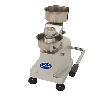 Globe PP4 Patty Press Burger Mold Manual 4" Dia. / 3/4" Thick Patty Anodized Aluminum Base Stainless Steel Bowls And Press Plate Heavy-Duty Single Level Press Handle Detachable Paper Holder Includes Starter Pack Of (500) Paper Dividers 7"W X 9"D Foot Print NSF