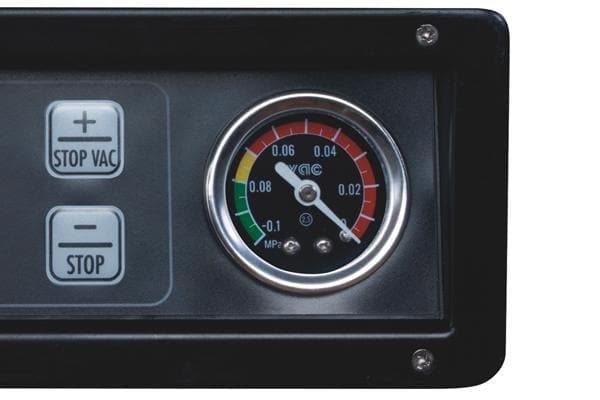 - Vacuum gauge to indicate amount of air extracted from chamber allowing the operator to stop the vacuum mid cycle
