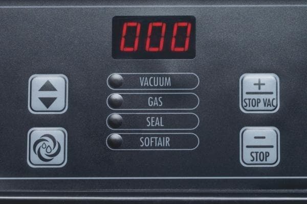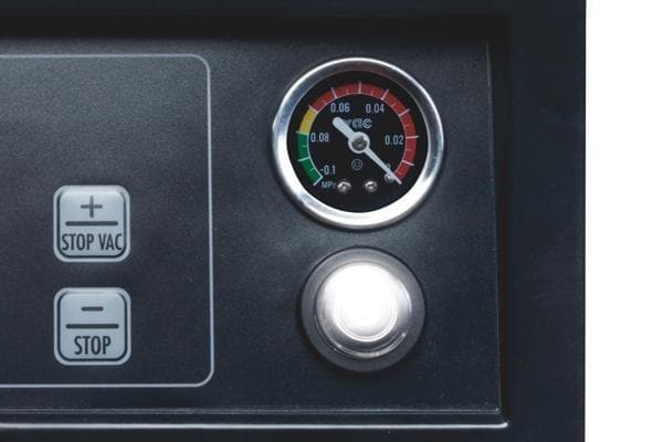 - Vacuum gauge to indicate amount of air extracted from chamber allowing the operator to stop the vacuum mid cycle