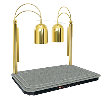 Description:  Decorative Carving Station with Two Heat Lamps (clear bulbs included), telescoping clearance (bottom of shade to top of cutting board) 14" - 26", 30° shade pivot, heated Swanstone® base with thermostatic control, includes one 36"x24" cutting board with meat juice containment, specify finish, cULus, UL EPH Classified, Made in USA