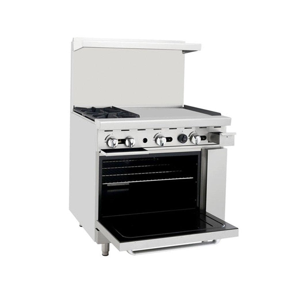 - 2 burners and 24" griddle independently controlled with stand by pilots