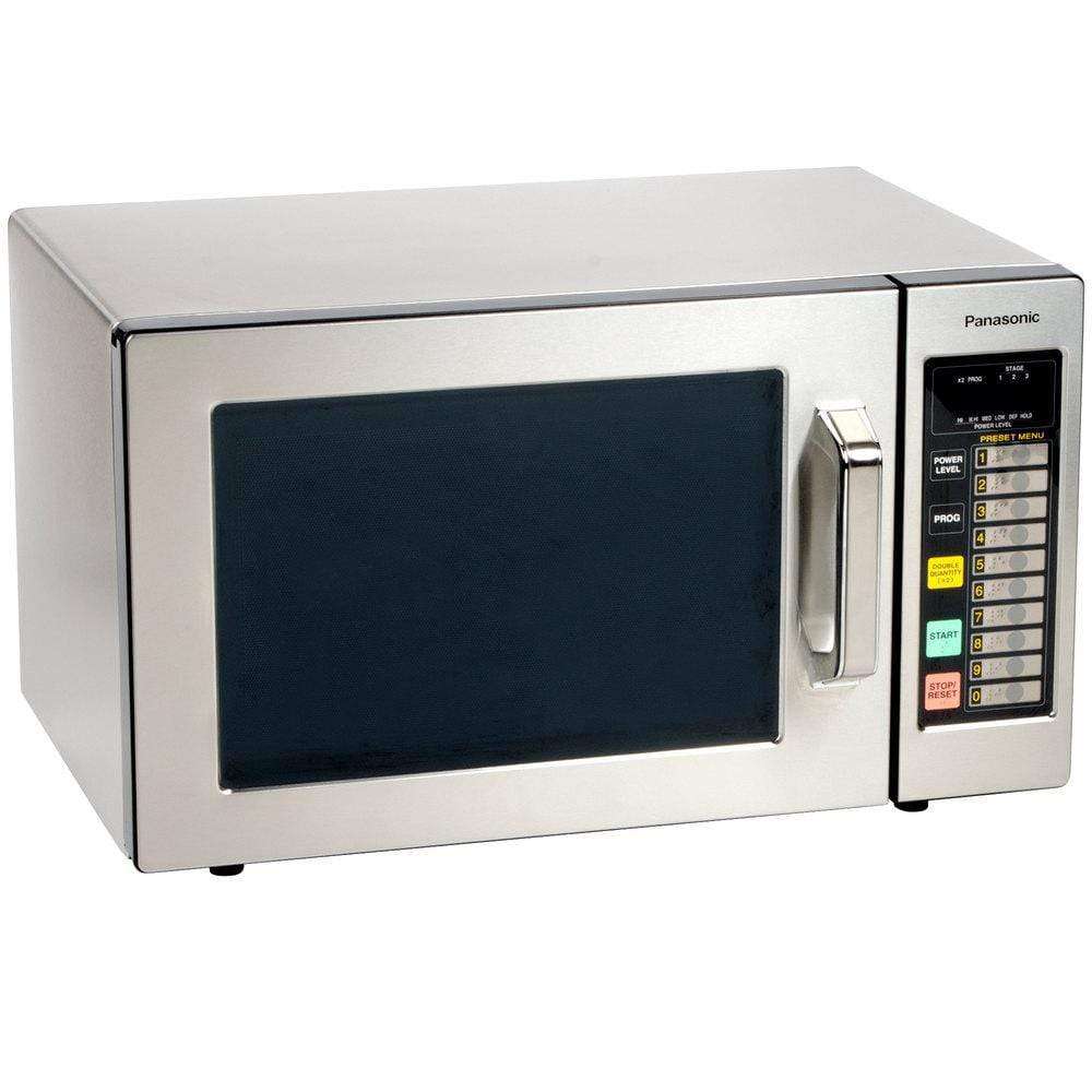 With six power levels and a 10-button keypad design, this Panasonic NE-1064F microwave oven is perfect for restaurants, cafeterias, or any high-volume venue. It can remember 20 different recipes to ensure cooking results are consistent. With two- and three-stage cooking, food can cook sequentially at different power levels without opening the door. When cooking, waves radiate from the bottom up, cooking food quickly and efficiently. Food can be monitored using the microwave's display or by looking through the door. The oven tone has its own control for adjusting the end-of-cycle alarm. Because the Panasonic NE-1064F commercial microwave is constructed from stainless steel, it is simple to clean and built to last.