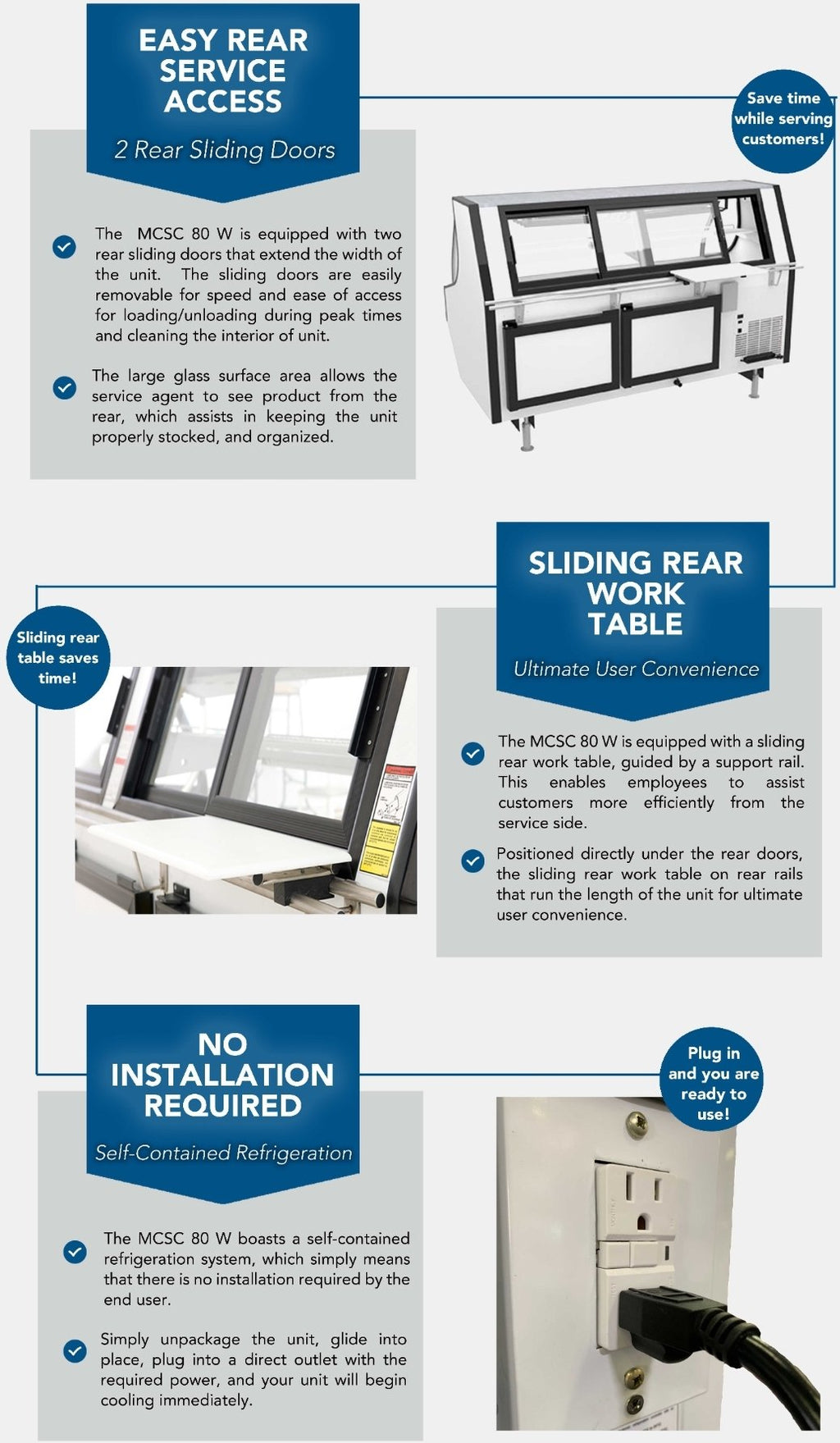- Work surface that slides along rear rails that run along the length of the unit for convenience while loading and unloading