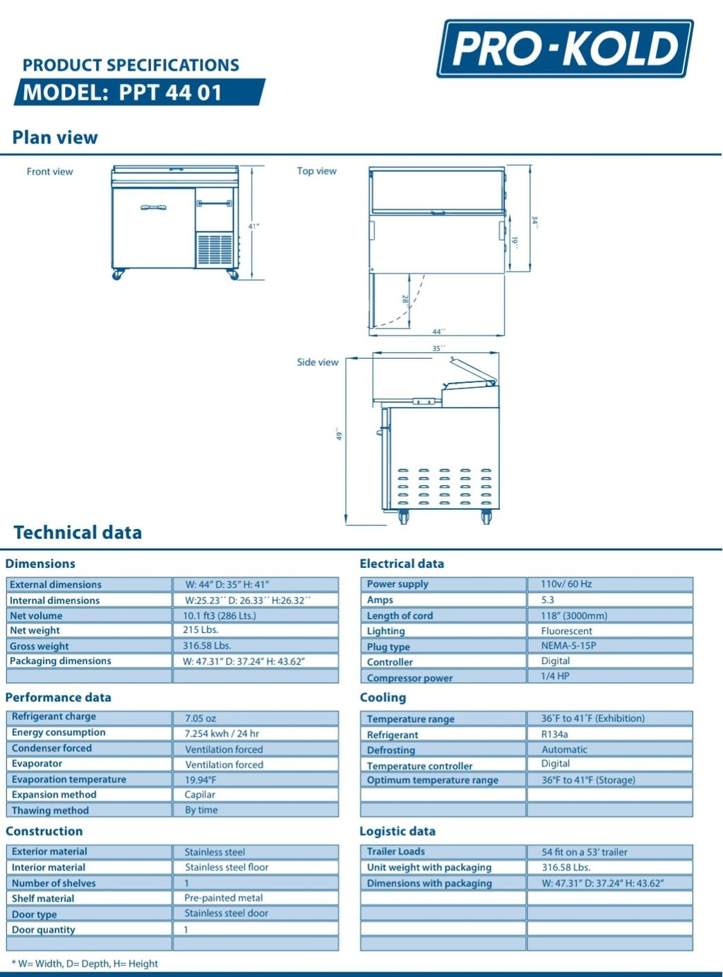 - Six (6) removable, poly-carbonate inserts stored in refrigerated top rail.