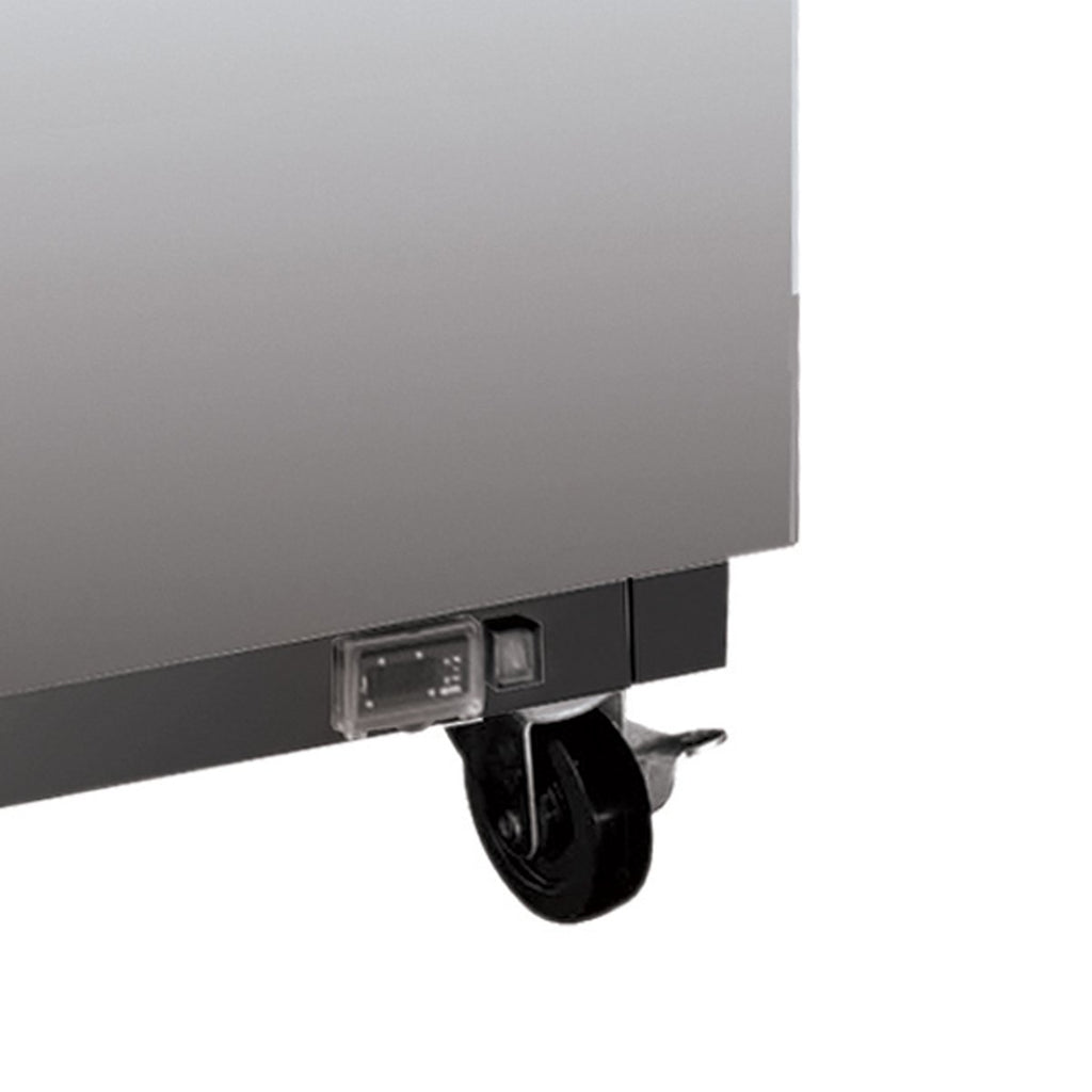 • Adjustable, heavy duty epoxy coated shelves, one per section/door hold full size sheet pans